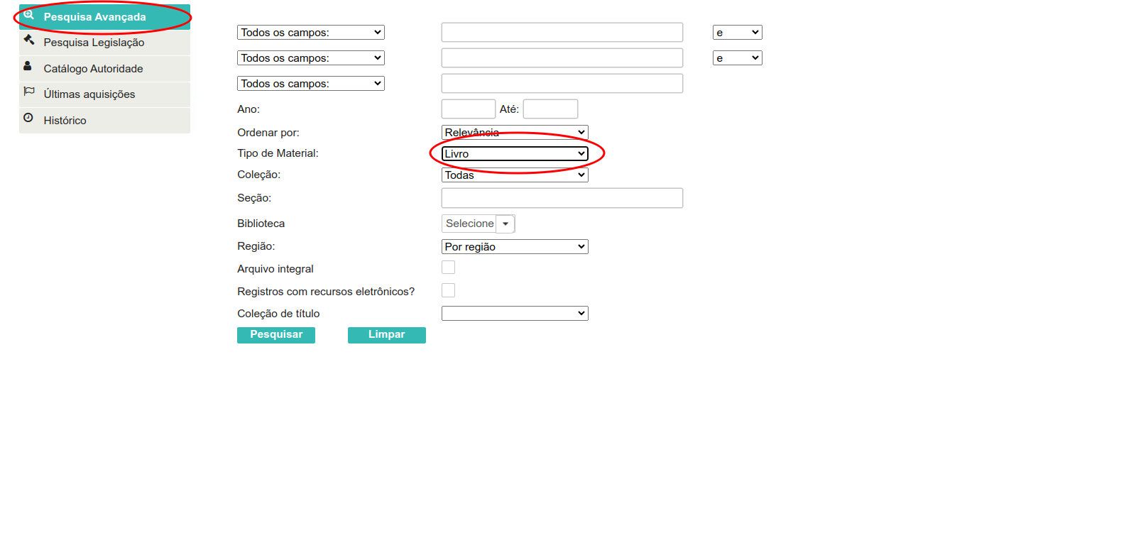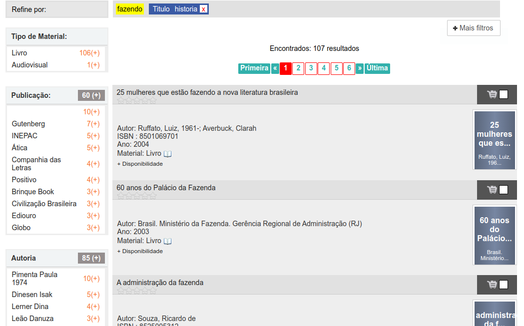 Pesquisa por tipo de material "Livro".